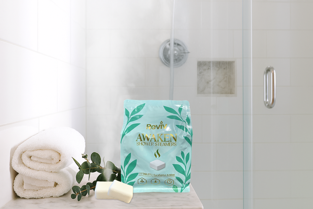 Turn your ordinary shower into a luxury spa retreat with REVIV Awaken Shower Steamers. This 15-count pack of individually wrapped shower tablets is expertly infused with eucalyptus and mint essential oils—a revitalizing duo known for their stress-relieving, congestion-clearing, and mind-awakening benefits. Whether you're gearing up for a productive morning or seeking calm after a long day, these steam-activated tablets transform your shower into a fragrant escape.