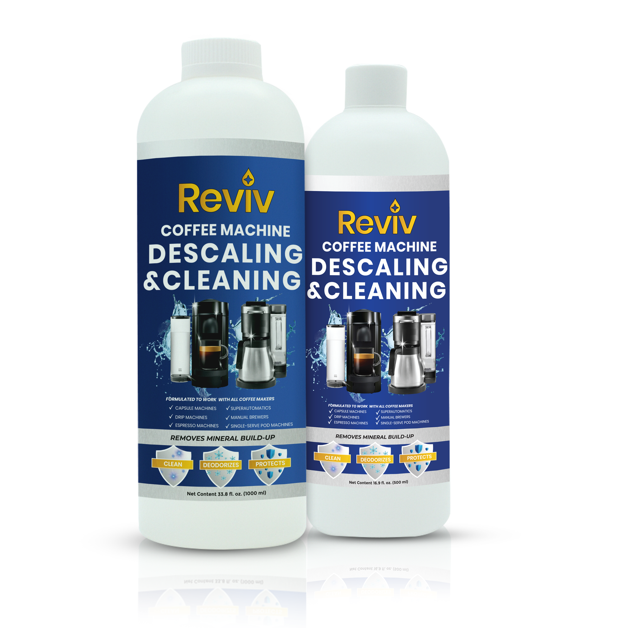 REVIV Coffee Machine Descaling Solution is a powerful 33.8 fl oz citric acid-based cleaner specifically engineered to restore and maintain the optimal performance of your coffee brewing equipment. Designed for effective limescale and calcium buildup removal, this descaler improves brewing efficiency and ensures that every cup of coffee delivers maximum flavor.