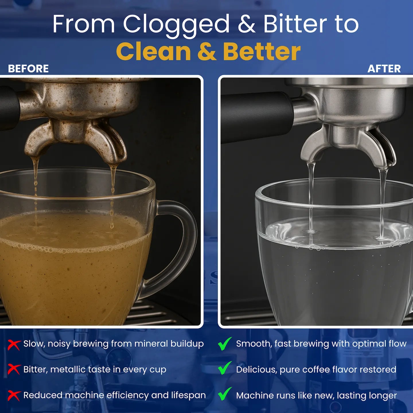 Unlike vinegar-based cleaners that leave lingering odors, REVIV provides a clean, residue-free experience that protects the integrity of your coffee. This non-toxic, biodegradable formula is safe for a wide range of machines, including espresso makers, drip brewers, Keurig®, Nespresso®, and other single-serve systems.