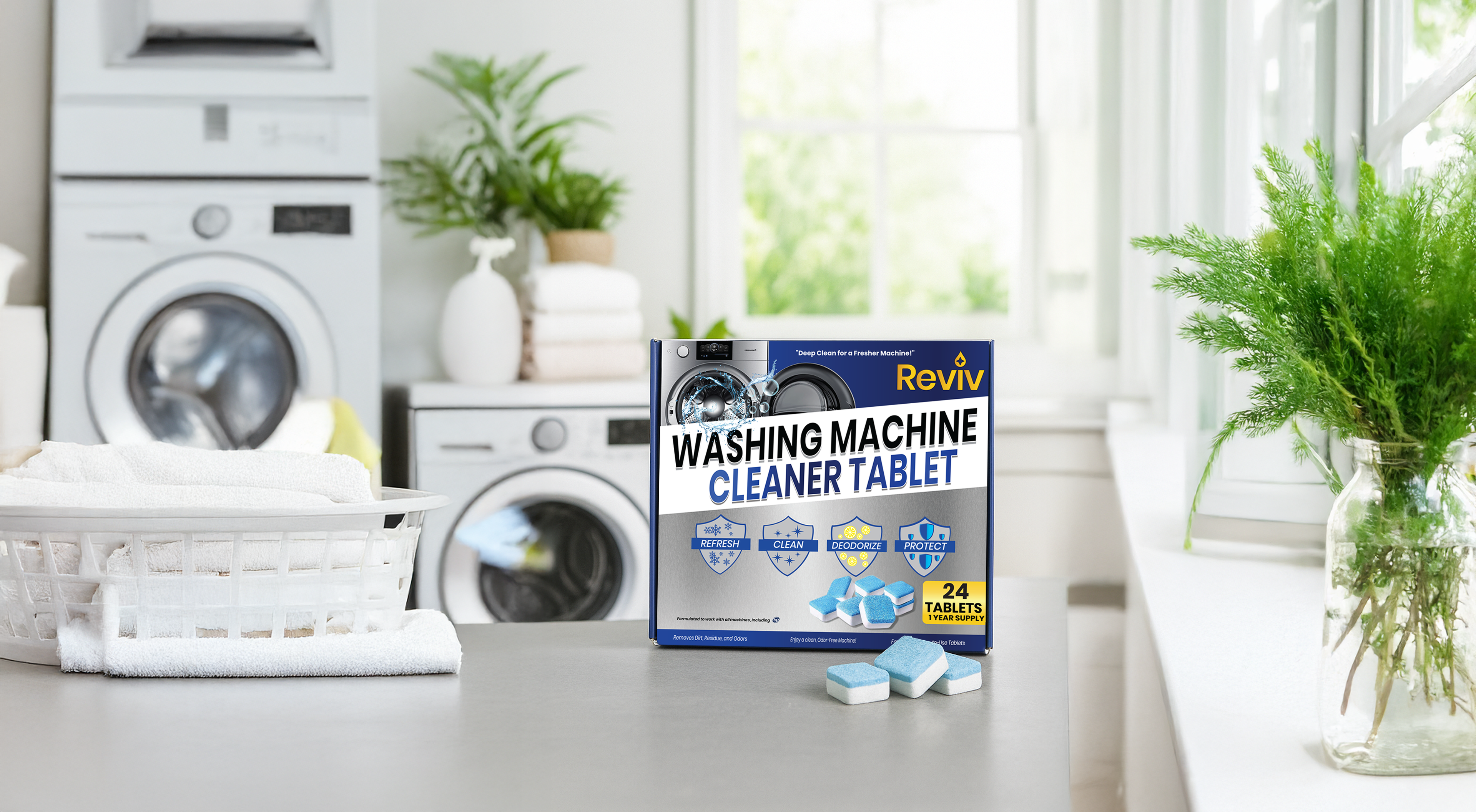 REVIV Washing Machine Cleaner Tablets offer a powerful and eco-conscious solution for keeping your washing machine running smoothly and smelling fresh. Specially formulated for both front-loading and top-loading washers—including HE machines—these tablets penetrate deeply into the drum and inner components to dissolve grime, detergent buildup, mildew, and limescale.